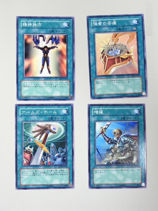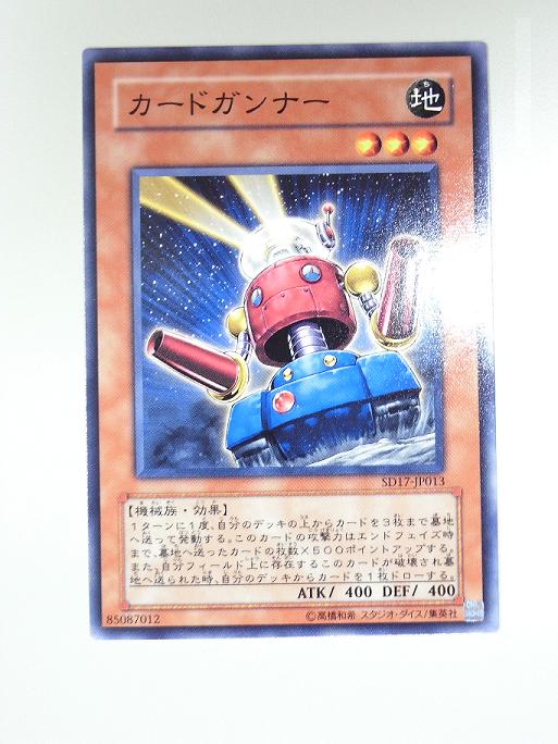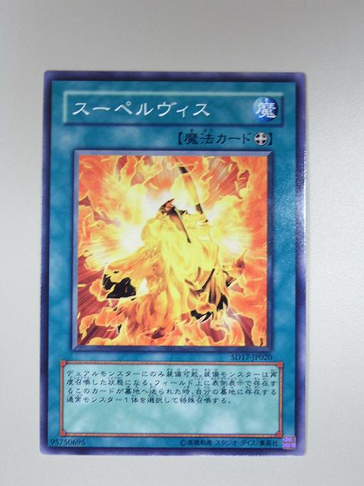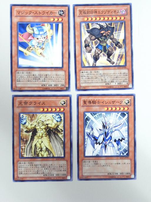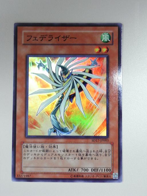 ストラクチャーデッキ-ウォリアーズ・ストライク- その他 2009年08月26日 さて遅れましたがストラクチャーの紹介です。コンマイが大判振る舞いしレア系が多く収録されました。まずはストラクの看板カードから《フェニックス・ギア・フリード》デュアルモンスター星8/炎属性/戦士族/攻2800/守2200このカードは墓地またはフィールド上に表側表示で存在する場合、通常モンスターとして扱う。フィールド上に表側表示で存在するこのカードを通常召喚扱いとして再度召喚する事で、このカードは効果モンスター扱いとなり以下の効果を得る。●相手が魔法カードを発動した場合、自分の墓地に存在するデュアルモンスター1体を選択して特殊召喚する事ができる。また、自分フィールド上に表側表示で存在する装備カード1枚を墓地へ送る事で、フィールド上に存在するモンスターを対象にする魔法・罠カードの発動を無効にし破壊する。戦士族のデュアルモンスター。再度召喚することで墓地のデュアルを特殊召喚できる。ギア・フリードはいろんな形でリメイクされる人気者ですね。《エヴォルテクター シュバリエ》デュアルモンスター星4/炎属性/戦士族/攻1900/守 900このカードは墓地またはフィールド上に表側表示で存在する場合、通常モンスターとして扱う。フィールド上に表側表示で存在するこのカードを通常召喚扱いとして再度召喚する事で、このカードは効果モンスター扱いとなり以下の効果を得る。●自分フィールド上に表側表示で存在する装備カード1枚を墓地へ送る事で、相手フィールド上に存在するカード1枚を破壊する。戦士族のデュアルモンスター。《神剣-フェニックスブレード》を絡めれば面白くなるかもしれません。《フェデライザー》効果モンスター星2/風属性/魔法使い族/攻 700/守1100このカードが戦闘によって破壊され墓地へ送られた時、自分のデッキからデュアルモンスター1体を墓地へ送り、自分のデッキからカードを1枚ドローする事ができる。戦闘で破壊され墓地に送られた場合デッキからデュアルを墓地に送ることでドローすることができるモンスター。デュエルデッキなら投入する価値はあると思います。《スーペルヴィス》 装備魔法デュアルモンスターにのみ装備可能。装備モンスターは再度召喚した状態になる。フィールド上に表側表示で存在するこのカードが墓地へ送られた時、自分の墓地に存在する通常モンスター1体を選択して特殊召喚する。装備することでデュアルモンスターを再度召喚した状態にすることが出来る魔法。《アームズ・ホール》で使いまわせれば強力そうです。《デュアル・ソルジャー》 デュアルモンスター星2/風属性/戦士族/攻 500/守 300このカードは墓地またはフィールド上に表側表示で存在する場合、通常モンスターとして扱う。フィールド上に表側表示で存在するこのカードを通常召喚扱いとして再度召喚する事で、このカードは効果モンスター扱いとなり以下の効果を得る。●このカードは1ターンに1度だけ、戦闘では破壊されない。このカードが戦闘を行う場合、そのダメージ計算後に自分のデッキから「デュアル・ソルジャー」以外のレベル4以下のデュアルモンスター1体を自分フィールド上に特殊召喚する事ができる。再度召喚するこどでデュアルモンスターを特殊召喚する誘発効果を得る強力ですね。《マジック・ストライカー》と《究極封印神エクゾディオス》《聖導騎士イシュザーク》と《光帝クライス》。手に入りにくいモンスターカードです。DTにも再録された《カードガンナー》がここでも再録。 《精神操作》と《強者の苦痛》 《アームズ・ホール》と《増援》。手に入りにくい限定版の魔法カードやなかなか再録されなかった魔法カードも再録。《魔宮の賄賂》これも限定だったので手に入りやすくなったのはある意味よいことです。今回は限定カードの大判振る舞いみたいな感じです。年末にはまた新しいストラクが出るそうです。魔法使い、戦士ときて次は何が来るのでしょうか。 PR