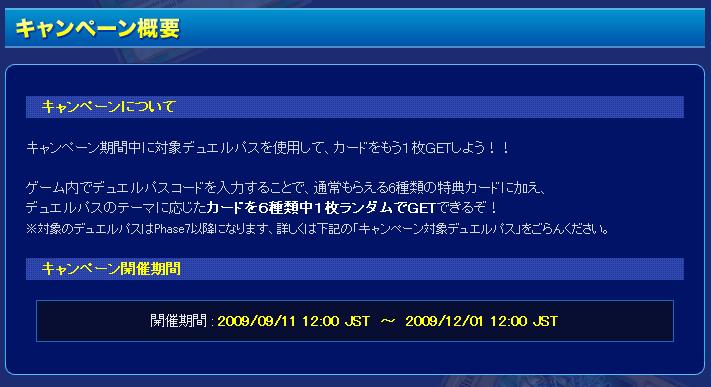 デュエルパスキャンペーン その他 2009年09月11日 さて制限改訂が発表されましたがもうひとつとんでもないことが。既存とデュエルパスとYO2になってから販売され、今は絶版となっているデュエルパス。こちらに期間限定ですが一部の高レートカードがランダムでもらえるという企画を立ち上げてきました。上記がそのリストです。と言うか廃盤のパスをいつ再販しますとか書いとけよw。どうやって手に入れるんだよwヤフオクで高いの落とせってか。こういったところがいい加減なんですよ、コンマイはしかし、正直これは痛いw。何千MP死んだか正直わかりませんw。下手すれば万逝くかもしれない。これを終了フラグと取るかYO3への布石と見るかは皆さん次第です。とりあえず泣いていいですか。 PR