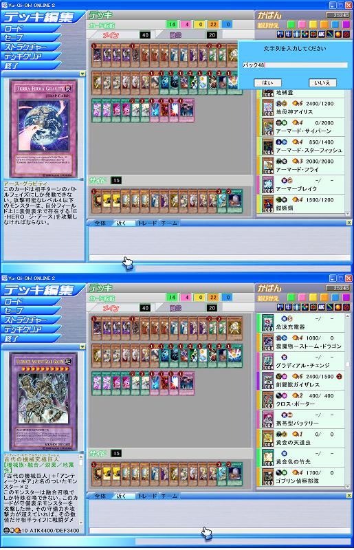 小ネタ(パック検索) その他 2008年10月07日 さて2ちゃんねるにて指定したパックのカ-ドのみを検索できると書いていたので確かめてみた。まずデッキ編集画面のカ-ドの総数の数字をクリック。そして検索機能で例でパック48と入力してみる但しパックは全角で数字は半角でですること。で、実際出来ました。これを見つけた人はえらい。これでそのパックで持っていないカ-ドの有無や枚数が確かめられる。ちなみに公式には書いてないそうな。裏技と言うことですか。こういう機能も良いですが他にするべきことがあるかと思うよ、コンマイ。 PR