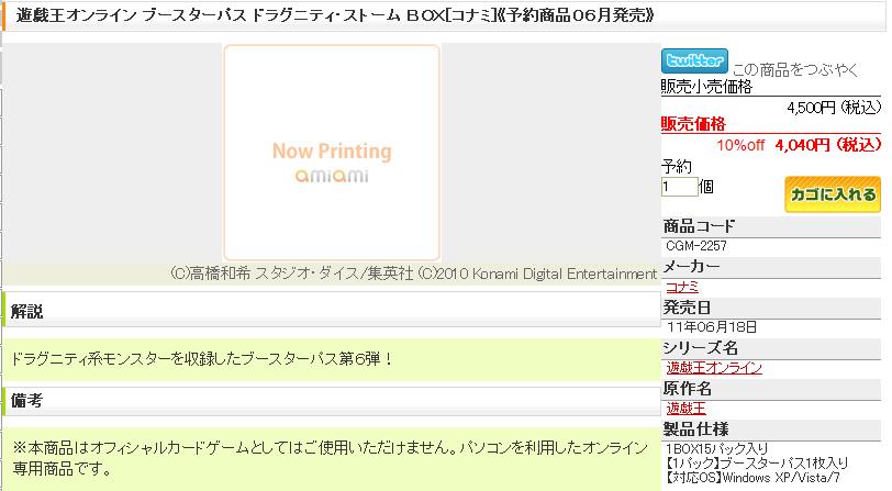 遊戯王オンライン ブースターパス ドラグニティ・ストーム その他 2011年04月23日 OCGのストラク内容詳細《ドラグニティアームズ-レヴァテイン》1(未実装) 《ドラグニティアームズ-ミスティル》1(未実装)《ドラグニティ-アキュリス》1(未実装) 《ドラグニティ-ドゥクス》1 《ドラグニティ-レギオン》1 《ドラグニティ-トリブル》1 《ドラグニティ-ブラックスピア》1 《ドラグニティ-ミリトゥム》1 《ドラグニティ-プリムス・ピルス》1 《ドラグニティ-ブランディストック》1 《ドラグニティ-ジャベリン》1 《霞の谷のファルコン》1 《ハンター・アウル》1(アルマ) 《真紅眼の飛竜》1(トライアル) 《風の精霊 ガルーダ》1 《ドラゴンフライ》1 《アームド・ドラゴン LV3》1 アームド・ドラゴン LV5》1 《仮面竜》2 《竜の渓谷》1(未実装) 《竜操術》 1(未実装) 《魔導師の力》1 《火竜の火炎弾》1 《スタンピング・クラッシュ》1 《強制転移》1 《死者転生》1 《無情の抹殺》1(ガンスリング) 《おろかな埋葬》1 《手札抹殺》1 《イタクァの暴風》1(ガンスリング) 《モンスターレリーフ》1 《八汰烏の骸》1(デュエルパス) 《方舟の選別》1(ガンスリング) 《聖なるバリア-ミラーフォース-》1 《竜の逆鱗》1 《奈落の落とし穴》1 《風霊術-「雅」》1 《ゴッドバードアタック》1 《邪神の大災害》1(ガンスリング,トライアル) PR