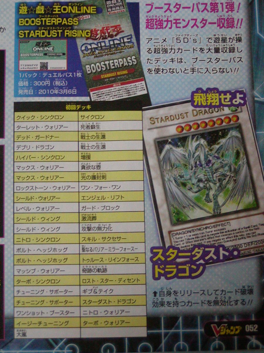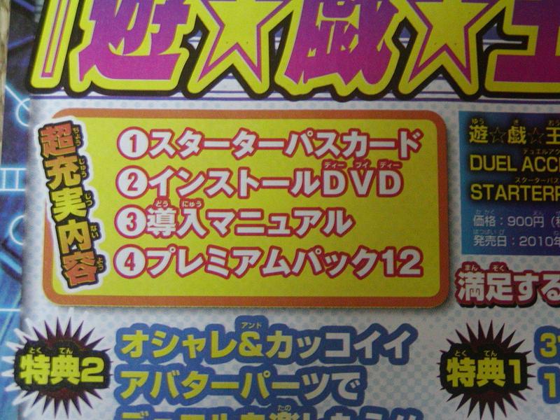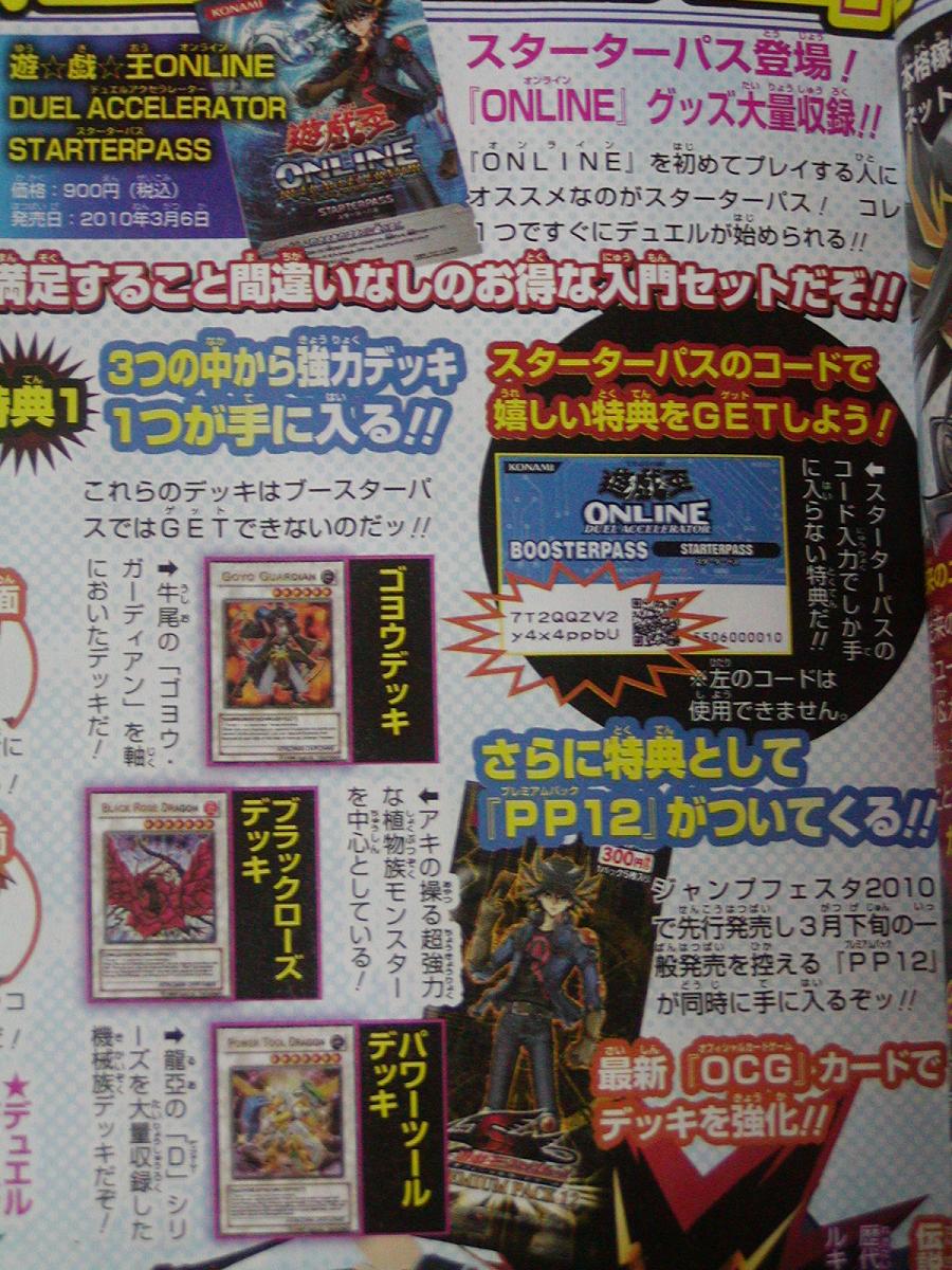VJ到着 その他 2010年02月18日 さてVJ到着しました。綺麗な画像は明日UPし直しますがとりあえず内容紹介。3月6日発売のスターターパスのランダムで手に入る3つのデッキ内容。ゴヨウデッキ、ブラックローズデッキパワーツールデッキ。何気に豪華だな。入っているものはスターターパス、インストDVDマニュアル、PP12のパック。OCGやってる人もそれ目当てに買いそうな悪寒がw。手に入るアバターは全部で6種類ランダムかどうかは書いていない。同じく3月6日発売のブースターパスの情報。まずは最初の入力で手に入るストラクのカードリスト結構豪華だな。あと、従来のパスと同様に6種別のカードがランダムで手に入るようです。とりあえずこんなところでした。それはそうと早くコナミスタイル予約始めろよ。あと半月くらいしかないぞ。 PR