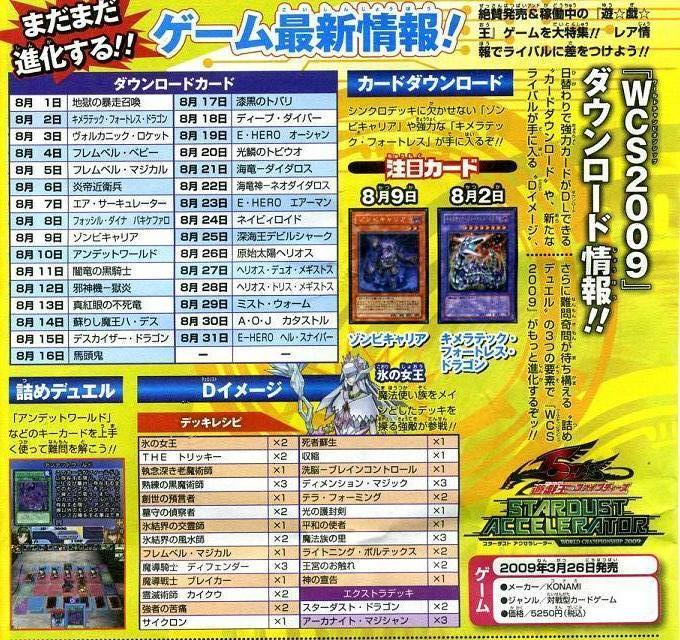 VJ確認情報 その③ その他 2009年07月23日 はいVJ確認情報の残りです。PSPで発売されるタッグフォース4にディマクとルアとルカが参戦。あとはTF3との連動で昔の鬼柳が出てくるようです。DSの方は8月の配信リストとなります。今回は全体的に少なく感じました。流石にネタが付き始めているようです。 PR