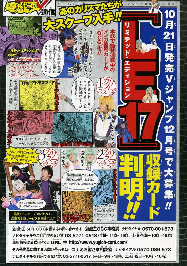 VJ確認情報残り その他 2009年09月29日 VJの残りをすっかり忘れていました。 まずはOCGの新ブースターの情報ジャックのカードが多数、収録されます。遊星がアニメで使った新カードも早速収録されるようです。OCGのEXPACK VOL.2のカードリスト。デュエリストパック 遊星編2の情報と遊星版デュエルディスクにDXVerが追加発売当然そのディスクだけのカードを同梱。商売うまいのう。DT第7弾の情報。先日発売されたTAF4の情報。WIIで発売予定のゲームのちょっとした内容。LE17の収録カード情報以上がVJ情報でした。来月はオンラインの情報がもちっと欲しいです。まああまり期待はしませんけど。 PR