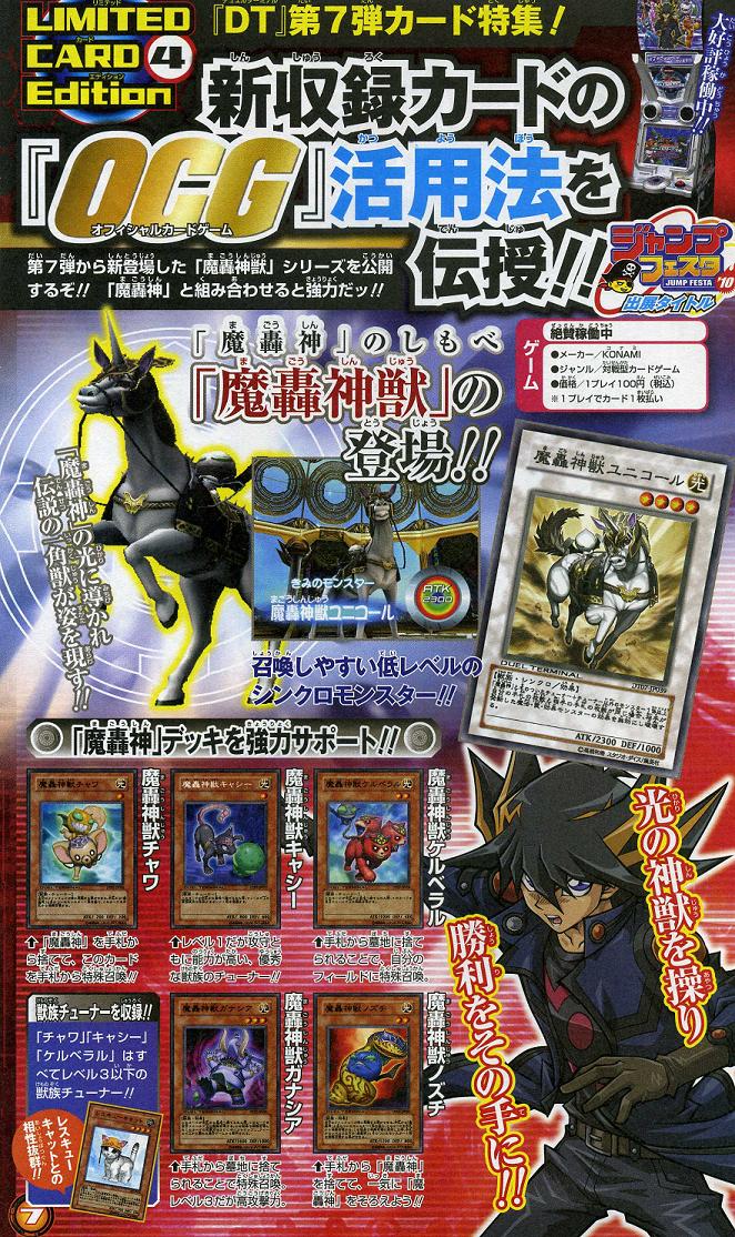 VJ確認情報 その他 2009年10月23日 さてVJ確認でございます。今週のガンス、来週のエボが終わると再録だらけのイベントに突入します。OCG関係は11月発売のブースターのカード情報。12月発売のストラクチャーデッキのカード情報。DT第7弾で登場した魔轟神獣の一部紹介。漫画版遊戯王GX、第6巻に付属される、《E・HERO The シャイニング》の紹介今月号で応募できるLE17のカード紹介などなど。OCGは充実していますね-。GAME関係は別記事にて。 PR