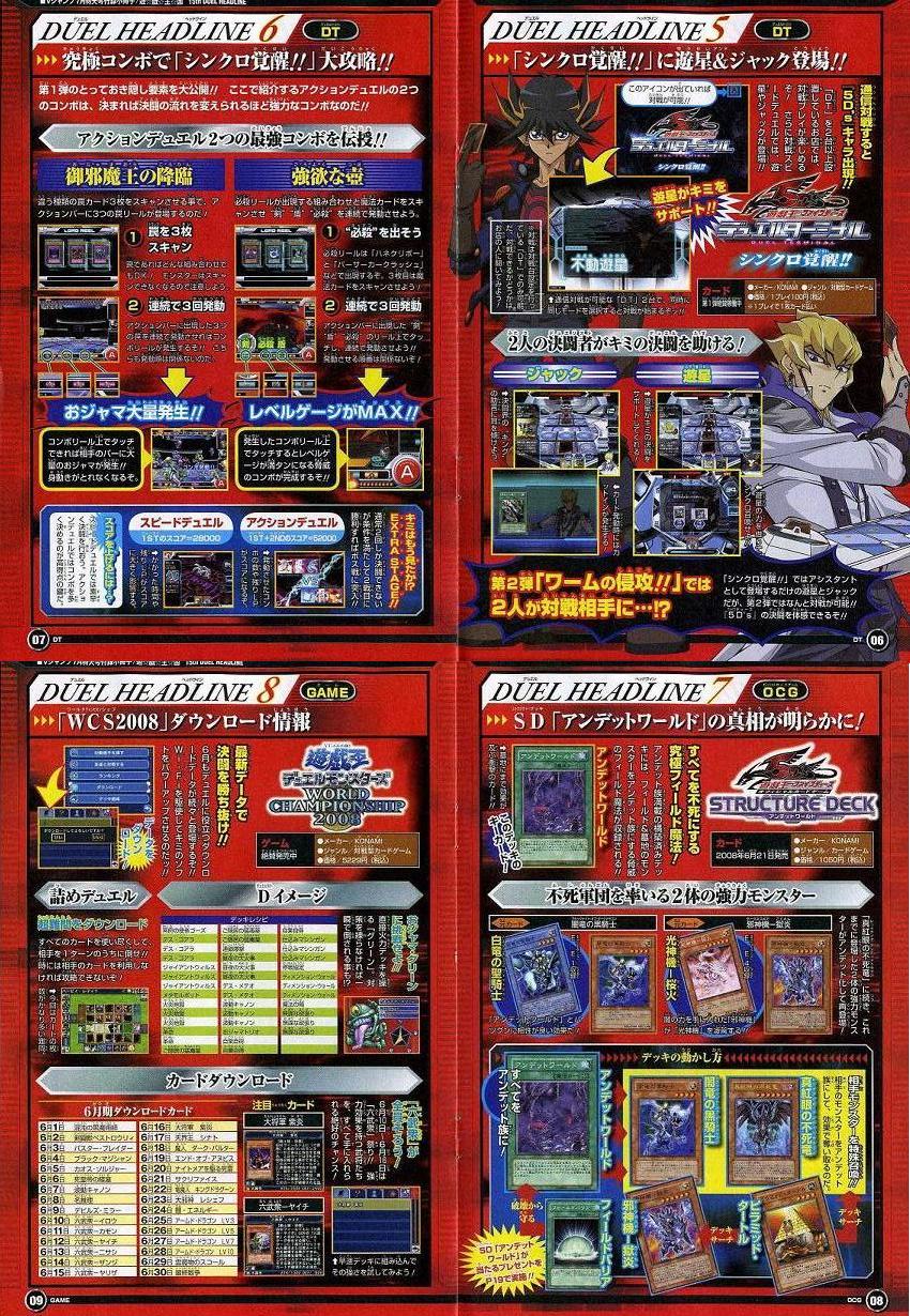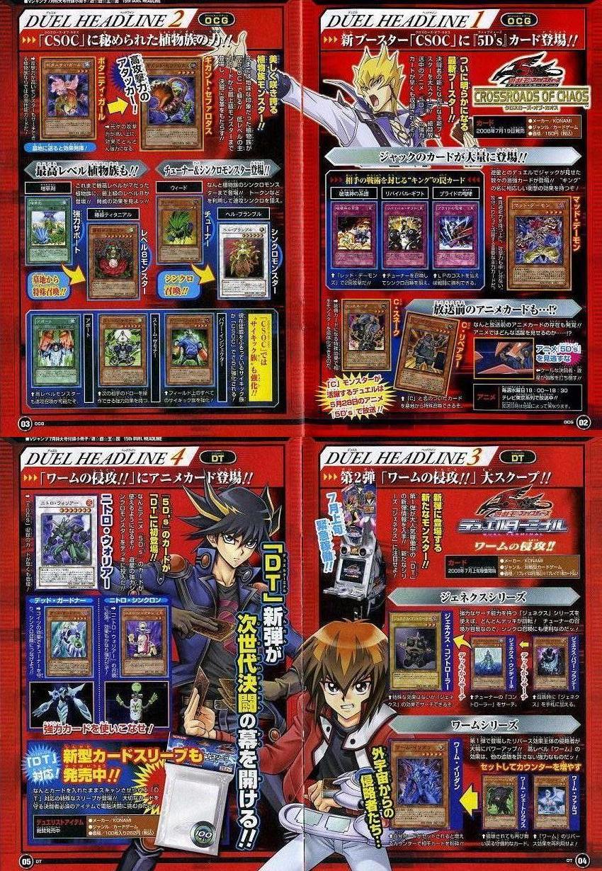 VJ情報② その他 2008年05月21日 さてVJ情報パ-ト②OCG関連とデュエルタ-ミナルについてまずはOCGの次のスタ-タ-パックの情報。植物族レベツ8が追加される模様。あとはチュ-ンモンスタ-と言うカテゴリ-も追加。あとはデュエルタ-ミナルの第二弾のことが記載されていました。残るはOCGの次のストラク情報アンデットがかなり強化されそうです。次のブ-スタ-パックとストラクについては購入したら紹介したいと思います。