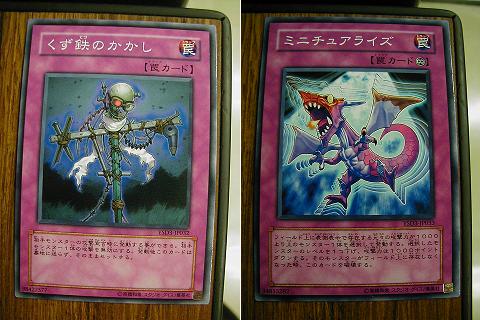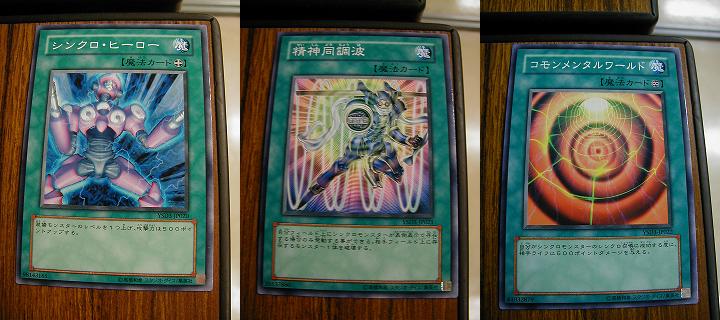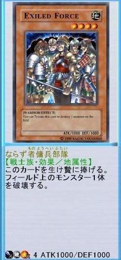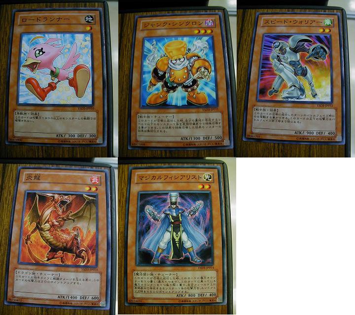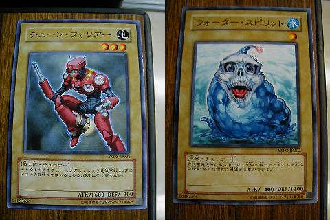遊戯王 ファイブディ-ズ スタ-タ-デッキ その他 2008年03月23日 さて以前書きましたがシンクロモンスタ-とそれに関するカ-ド紹介。まずはシンクロモンスタ-《ジャンク・ウォリアー》 シンクロ・効果モンスター星5/闇属性/戦士族/攻2300/守1300「ジャンク・シンクロン」+チューナー以外のモンスター1体以上このカードがシンクロ召喚に成功した時、このカードの攻撃力は自分フィールド上に表側表示で存在するレベル2以下のモンスターの攻撃力の合計分アップする。《大地の騎士ガイアナイト》シンクロモンスター星6/地属性/戦士族/攻2600/守 800チューナー+チューナー以外のモンスター1体以上《ギガンテック・ファイター》シンクロ・効果モンスター星8/闇属性/戦士族/攻2800/守1000チューナー+チューナー以外のモンスター1体以上このカードの攻撃力は墓地に存在する戦士族モンスターの数×100ポイントアップする。このカードが戦闘によって破壊され墓地に送られた時、墓地に存在する戦士族モンスター1体を選択し自分フィールド上に特殊召喚する事ができる。つづいてチュ-ナ-(通常モンスタ-)《チューン・ウォリアー》 チューナー(通常モンスター)星3/地属性/戦士族/攻1600/守 200あらゆるものをチューニングしてしまう電波系戦士。常にアンテナを張ってはいるものの、感度はそう高くない。《ウォーター・スピリット》 チューナー(通常モンスター)星1/水属性/水族/攻 400/守1200古代南極大陸の永久凍土にて生命が宿ったと言われる氷水の精霊。様々な物質に浸透する事ができる。同じくチュ-ナ-と新規カ-ド(効果モンスタ-)《ロードランナー》 効果モンスター星1/地属性/鳥獣族/攻 300/守 300このカードは攻撃力1900以上のモンスターとの戦闘では破壊されない。《ジャンク・シンクロン》 チューナー(効果モンスター)星3/闇属性/戦士族/攻1300/守 500このカードが召喚に成功した時、自分の墓地に存在するレベル2以下のモンスター1体を表側守備表示で特殊召喚する事ができる。この効果で特殊召喚した効果モンスターの効果は無効化される。《スピード・ウォリアー》 効果モンスター星2/風属性/戦士族/攻 900/守 400このカードの召喚に成功したターンのバトルフェイズ時にのみ発動することができる。このカードの元々の攻撃力はバトルフェイズ終了時まで倍になる。《炎龍》 チューナー(効果モンスター)星2/炎属性/ドラゴン族/攻1400/守 600このカードが相手ライフに戦闘ダメージを与える度に、このカードの攻撃力は200ポイントアップする。《マジカルフィシアリスト》 チューナー(効果モンスター)星2/光属性/魔法使い族/攻 800/守 400このカードが召喚に成功した時、このカードに魔力カウンターを1つ置く(最大1つまで)。このカードに乗っている魔力カウンターを1つ取り除く事で、自分フィールド上に表側表示で存在するモンスター1体の攻撃力を、エンドフェイズ時まで500ポイントアップする。シンクロ召喚を助けるサポ-トカ-ドと新規カ-ド(魔法及び罠)《シンクロ・ヒーロー》 装備魔法装備モンスターのレベルを1つ上げ、攻撃力は500ポイントアップする。《精神同調波》 通常魔法自分フィールド上にシンクロモンスターが表側表示で存在する場合のみ発動する事ができる。相手フィールド上に存在するモンスター1体を破壊する。《コモンメンタルワールド》 永続魔法自分がシンクロモンスターのシンクロ召喚に成功する度に、相手ライフに500ポイントダメージを与える。《くず鉄のかかし》 通常罠相手モンスターの攻撃宣言時に発動する事ができる。相手モンスター1体の攻撃を無効にする。発動後このカードは墓地に送らず、そのままセットする。《ミニチュアライズ》 永続罠フィールド上に表側表示で存在する元々の攻撃力が1000より上のモンスター1体を選択して発動する。選択したモンスターのレベルを1つ下げ、攻撃力は1000ポイントダウンする。そのモンスターがフィールド上に存在しなくなった時、このカードを破壊する。そしてカ-ドテキストが訂正された例《ならず者傭兵部隊》効果モンスター星4/地属性/戦士族/攻1000/守1000このカードをリリースして発動する。フィールド上に存在するモンスター1体を破壊する。以上が新ル-ルにおいて使用されていくカ-ド達。もうすぐ発売される第6期のブ-スタ-が発売されればリアルOCGの大会等においてもこれらのカ-ドが見られるようになるでしょう。オンラインに適用されるのは一年は先かな。ではこれにて。