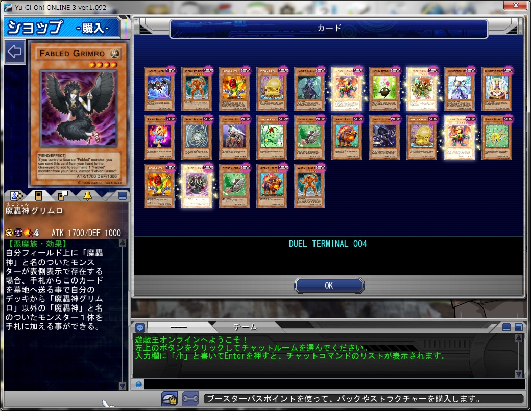 公式より その他 2010年10月15日 新シーズン開始!!ブースター「ANCIENT PROPHECY」登場!龍可の「エンシェント・フェアリー・ドラゴン」など、アニメ登場カードを多数収録!前ブースターから登場の「コアキメイル」を強力サポート!君だけのデッキを作り出せ!イベント景品にプロテクターが追加されました。特定条件を達成することで、プロテクターを入手することが出来ます。前シーズンのTPプレゼントを取得いただけます。前シーズンのチームスコアプレゼントを取得いただけます。禁止・制限カードを改定いたしました。新ブースターパス「THE LEGEND OF ENDYMION」発売!魔法使いの王者エンディミオンが現れし時、神聖なる魔法の力が解放される! 2010/10/15