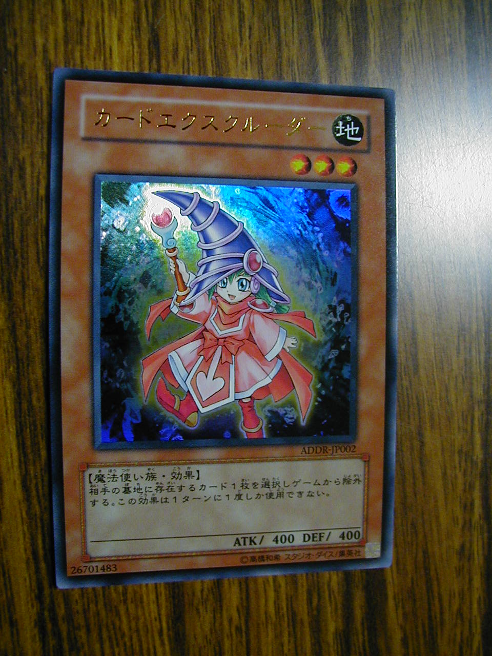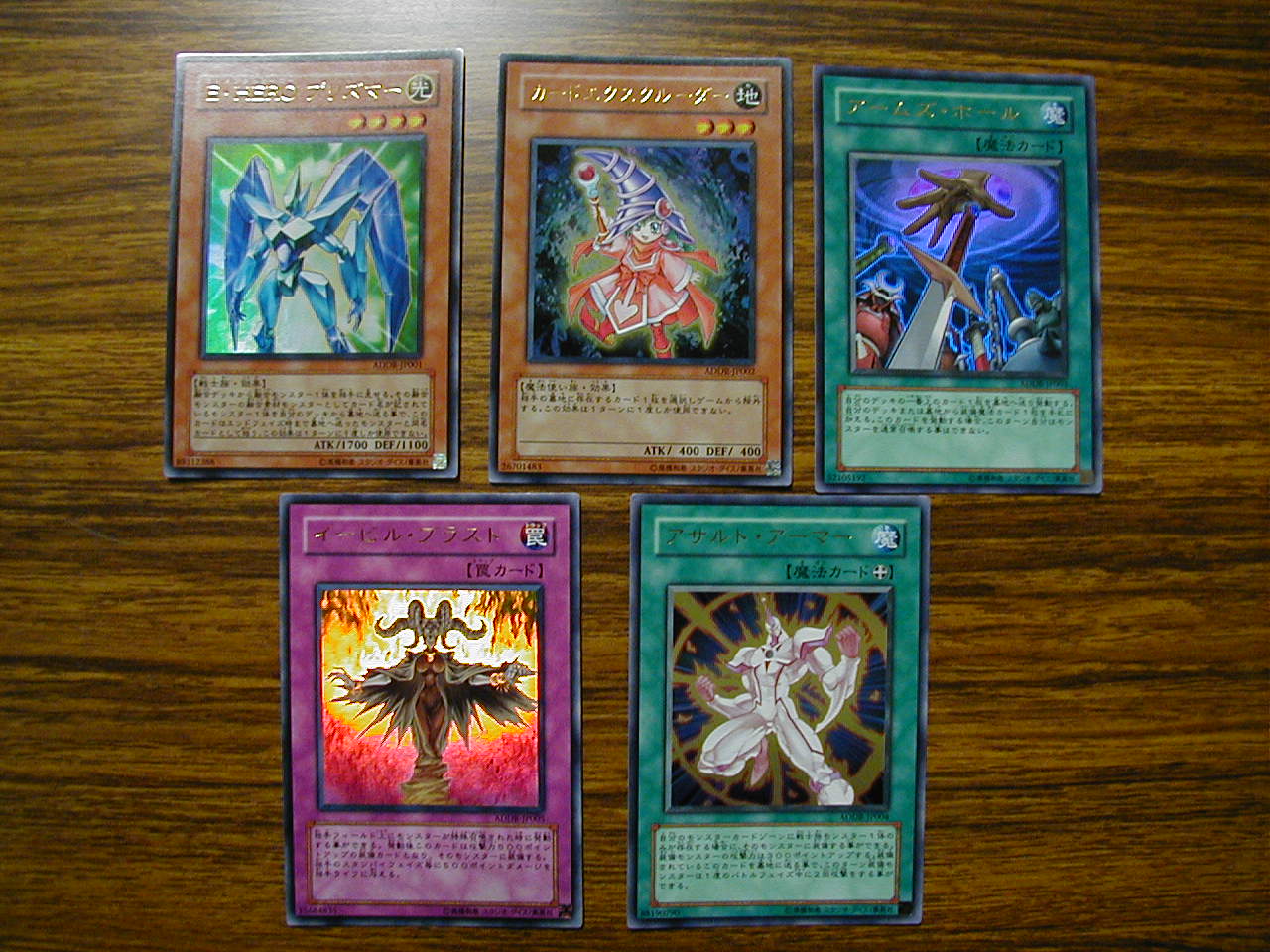デュエルディスク オシリスレッド その他 2007年12月26日 さて以前PHANTOM DARKNESSを購入したことは記事にしましたがネタ用にデュエルディスクを購入したのでそちらについてちょっとばかり。ネタの為に金掛けすぎだなさて付属のカ-ドについてですが 上記の5枚が付属カ-ド。《E・HERO プリズマー》効果モンスター星4/光属性/戦士族/攻1700/守1100融合デッキから融合モンスター1体を相手に見せる。その融合モンスターの融合素材モンスターとしてカード名が記されているモンスター1体を自分のデッキから墓地へ送る事で、このカードはエンドフェイズ時まで墓地へ送ったモンスターと同名カードとして扱う。この効果は1ターンに1度しか使用できない。効果は上記の通り。使用用途としてはTVと同じようにレインボ-ネオスを召喚するために使うかあと思いつくのは、E・HEROデッキやE-HEROデッキやネオスデッキ。融合デッキに採用するのはありかもしれん。実用的な使い方のするならダ-クガイアやデミスガイアにも入れられるか。デッキバランス崩れそうだが。《アームズ・ホール》 通常魔法自分のデッキの一番上のカード1枚を墓地へ送り発動する。自分のデッキまたは墓地から装備魔法カード1枚を手札に加える。このカードを発動する場合、このターン自分はモンスターを通常召喚することはできない。効果は上記の通り。Dブレ-ドや、混沌デッキ、装備デッキに入れれば活躍するな。《アサルト・アーマー》装備魔法自分のモンスターカードゾーンに戦士族モンスター1体のみが存在する場合に、そのモンスターに装備することができる。装備モンスターの攻撃力は300ポイントアップする。装備されているこのカードを墓地に送る事で、このターン装備モンスターは1度のバトルフェイズ中に2回攻撃をする事ができる。効果は上記の通り。戦士デッキや原作通りにネオスに使えば面白そうだ。《首領・ザルーグ》等のハンデス効果を持つカ-ドに使用していろいろ悪さも出来そうだ。やられた相手はたまらんだろうが。《イービル・ブラスト》通常罠相手フィールド上にモンスターが特殊召喚された時に発動する事ができる。発動後このカードは攻撃力500ポイントアップの装備カードになり、そのモンスターに装備する。相手のスタンバイフェイズ毎に500ポイントダメージを相手ライフに与える。効果は上記の通り。ファンデッキやバ-ンデッキに投入するぐらいか。《拷問車輪》の方が実用性ありますが。最後は《カードエクスクルーダー》 効果モンスター星3/地属性/魔法使い族/攻 400/守 400相手の墓地に存在するカード1枚を選択しゲームから除外する。この効果は1ターンに1度しか使用できない。効果は上記の通り。《D.D.クロウ》とはまた違った意味での除外系カ-ド。《霊滅術師 カイクウ》の方が実用性ありますけど。こちらについては、マスコットキャラクタ-と言う位置かと。あとはコナミが萌えを追求した結果と言うことで。ちなみにTVでは一度出ただけです。また出てくる機会はあるのか。最後に《E・HERO プリズマー》《カードエクスクルーダー》 の2枚はカ-ドSHOPで一枚5250円でした。ディスク買った値段より高いじゃねえか。これは転売屋のいいカモだな。もう少し商売上手になってくれコナミ。