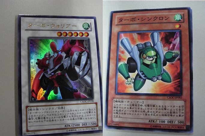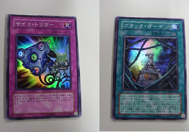 CROSSROADS OF CHAOS(クロスローズ・オブ・カオス) その他 2008年10月29日 さてかな-り前に買ったCSOCのカ-ド紹介でもちょいとまずは看板カ-ド《ブラック・ローズ・ドラゴン》シンクロ・効果モンスター星7/炎属性/ドラゴン族/攻2400/守1800チューナー+チューナー以外のモンスター1体以上このカードがシンクロ召喚に成功した時、フィールド上に存在するカードを全て破壊する事ができる。1ターンに1度、自分の墓地に存在する植物族モンスター1体をゲームから除外する事で、相手フィールド上に存在する守備表示モンスター1体を攻撃表示にし、このターンのエンドフェイズ時までその攻撃力を0にする。十六夜アキが使用する5匹のドラゴンの内の一体強いです。はよ使いたい。今回初出のディフォーマー達《D・モバホン》 《D・マグネンU》 《D・チャッカン》 《D・ラジカッセン》 《D・キャメラン》 《D・ラジオン》 アニメの主人公遊星が使う《ターボ・ウォリアー》と《ターボ・シンクロン》 《ターボ・ウォリアー》シンクロ・効果モンスター星6/風属性/戦士族/攻2500/守1500「ターボ・シンクロン」+チューナー以外のモンスター1体以上このカードがレベル6以上のシンクロモンスターに攻撃する場合、攻撃対象モンスターの攻撃力を半分にする。このカードはレベル6以下の効果モンスターの効果の対象にならない。《ターボ・シンクロン》チューナー(効果モンスター)星1/風属性/機械族/攻 100/守 500このカードの攻撃宣言時、攻撃対象となるモンスターを守備表示にする事ができる。このカードの攻撃によって自分が戦闘ダメージを受けた時、受けたダメージの数値以下の攻撃力を持つモンスター1体を手札から特殊召喚する事ができる。あとはス-レアの2枚 《サイコ・トリガー》と 《ブラック・ガーデン》《サイコ・トリガー》通常罠自分のライフポイントが相手より下の場合に発動する事ができる。自分の墓地に存在するサイキック族モンスター2体をゲームから除外し、自分のデッキからカードを2枚ドローする。《ブラック・ガーデン》フィールド魔法「ブラック・ガーデン」の効果以外の方法でモンスターが召喚・特殊召喚に成功した時、そのモンスターの攻撃力を半分にし、そのモンスターのコントローラーから見て相手のフィールド上に「ローズ・トークン」(植物族・闇・星2・攻/守800)1体を攻撃表示で特殊召喚する。自分はこのカードとフィールド上に表側表示で存在する全ての植物族モンスターを破壊し、破壊したモンスターの攻撃力の合計と同じ攻撃力のモンスター1体を自分の墓地から選択して特殊召喚する事ができる。結構面白いカ-ドが入ってます。しかし植物族デッキ組むのがメインかなやっぱり。さて次は遊星編か、海外物でもUPして見ます。 PR