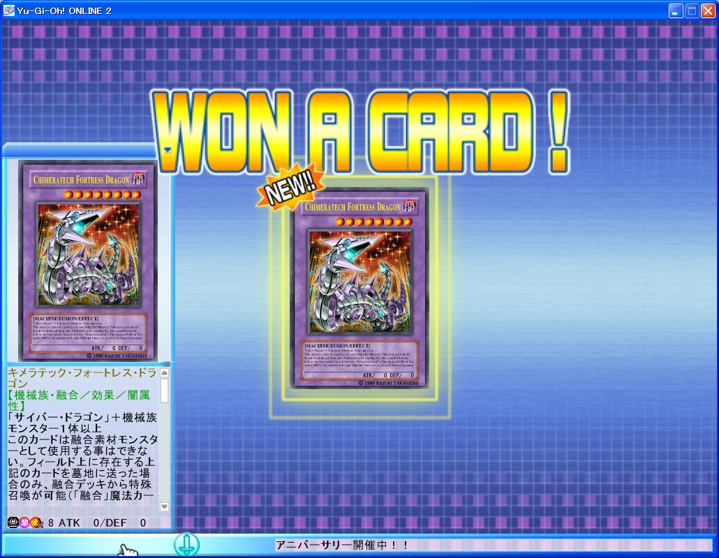 第3回 アニバーサリートライアル 1日目~3日目 アニバーサリー・トライアル 2008年08月04日 ○○○○○ ○○○○○鯖○○○○○ ○○×××○○○○×○○○○ ××××××××○×○○○○××○×××○○×○ ○××○○○×○×○×○○×○×○ ××○×○×○○ ○○○○○ ××××○○○××○○○○×○×○○ 使用デッキ水晶帝(50勝まで)デミスブランコ(51勝から)とりあえずメインはトライアル隠れIDはアニバと平行作業しつつ参戦。今日からはメインを回していきます。ランダムは下記の通り。51勝《邪神の大災害》 52勝《立ちはだかる強敵》 53勝《威圧する魔眼》 54勝《トリッキーズ・マジック4》 55勝《所有者の刻印》56勝《ヘルフレイムエンペラー》57勝《キメラテック・フォートレス・ドラゴン》58勝《キメラテック・フォートレス・ドラゴン》59勝《魂の綱》 60勝《所有者の刻印》61勝《地縛霊の誘い》 62勝《サイレント・ソードマン LV7》 63勝《アックス・ドラゴニュート》 64勝《邪神ドレッド・ルート》 65勝《所有者の刻印》追記50勝達成するともらえる称号まあ確かにお祭りではあるのだが。 PR