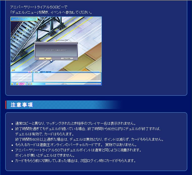 第3回 アニバ-サリ-トライアル アニバーサリー・トライアル 2008年08月02日 第3回アニバ-サ-リ-トライアルが開催されました。期間は8月1日~8月17日一杯まで。50勝は《キメラテック・フォートレス・ドラゴン》ランダム率が気になりますが4垢で各2周ノルマでやって行きたいと思います。 PR