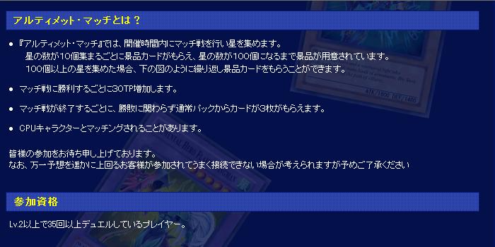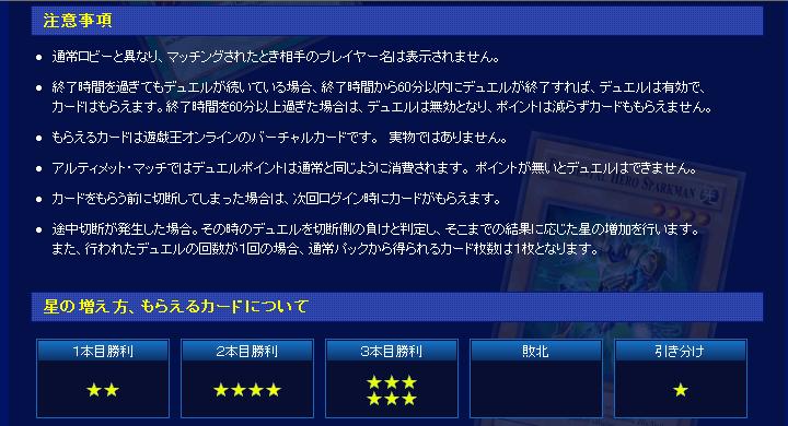 アルティメットマッチ アルティメット・マッチ 2008年08月28日 アルティメットマッチ開催のお知らせ 2008.08.28 13:00-15:00のメンテナンス以降、「アルティメットマッチ」を開催いたします。開催期間2008年08月28日 15:00 ~ 2008年9月12日 10:00 詳細はこちらをご確認ください。 さていきなり予告も無しに新イベント開催。しかもアニバと同じように一定期間の開催24時間参加可能、しかもTPまで増えるってアホか-、何考えとんじゃ-。まあそれは置いてアニバと同じ様に☆が10ごとにイベントカ-ドがもらえるのだがここにきてアレを出すとは《魔封じの芳香》を他にも一部TPカ-ドまで入っている大盤振る舞いだなコンマイ。あと詳しい内容等についてはUPした画像か公式にて確認して下さい。さてさて2垢の維持が激しく難しくなった。とりあえずPASS買いに行こう。 PR