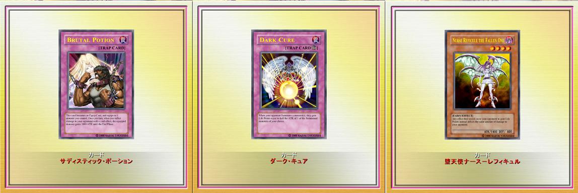 エボリューション・マッチ 第27回 夜の部① エボリューション・マッチ 2009年07月18日 ①○○ 80枚☆6②○○ 光ビート☆6③○○ ライトロード☆6④○○ ライトロード☆6⑤×○○ シモッチ☆10⑥○鯖落 ?⑦○○ ライロパーミ☆6⑧×× デミスガイア☆0⑨切断 ライトロード☆2⑩○×○ トマトスタン☆8⑪×○× 剣闘獣☆4 ⑫×× 剣闘獣☆0⑬○○ デミスガイア☆6⑭×○○ デミスガイア☆10 ⑮○×○ 図書館エグゾ ☆8⑯○○ スタン☆6 使用デッキライトロード①改隠れIDで参戦。まあ普通に勝てた感じです。TP 360P☆84戦利品☆10《サディスティック・ポーション》3枚☆20《ダーク・キュア》3枚☆30《堕天使ナース-レフィキュル》2枚パック43《ジェネティック・ワーウルフ》1枚 PR