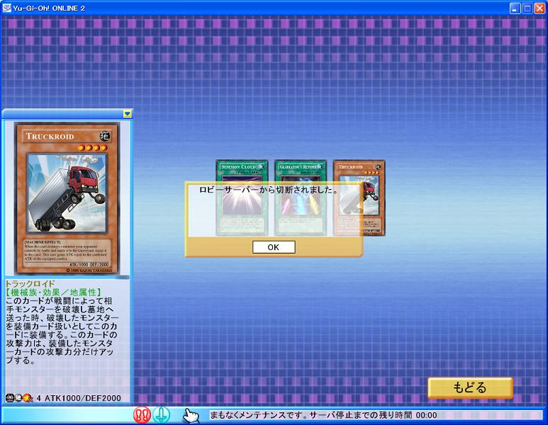 エボリューション・マッチ 第29回 結果 エボリューション・マッチ 2009年08月30日 諸般の事情によりいつもの戦跡は無しです。戦利品の結果☆10《ジャイアントワーム》9枚☆20《ネイビィロイド》9枚 ☆30《馬頭鬼》9枚パック47《終末の騎士》2枚夜の部の緊急メンテにより強制的に落とされたの図。しっかりして欲しいものです。 PR