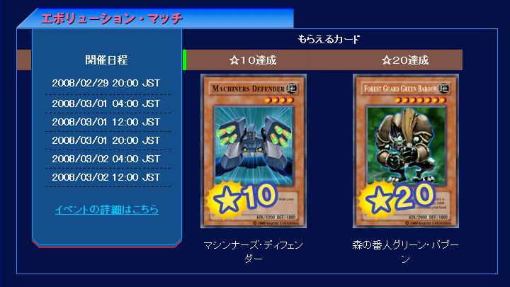 エボリューション・マッチ 第3回 (EVO) エボリューション・マッチ 2008年02月29日 ☆10《マシンナーズ・ディフェンダー》☆20《森の番人グリーン・バブーン》さてエボリュ-ションマッチです。しっかりTP稼がないと。しかしこれでようやくバブ-ン帝やバブ-ン入り獣族、獣戦士族デッキが作れます。 PR