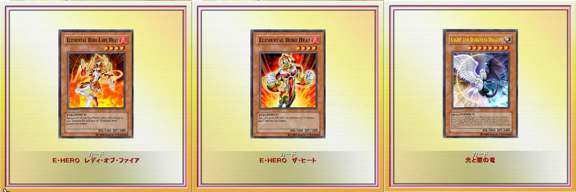 エボリューション・マッチ 第13回 エボリューション・マッチ 2008年09月26日 ☆10《E・HERO レディ・オブ・ファイア》 ☆20《E・HERO ザ・ヒート》 ☆30《光と闇の竜》 つづきはこちら