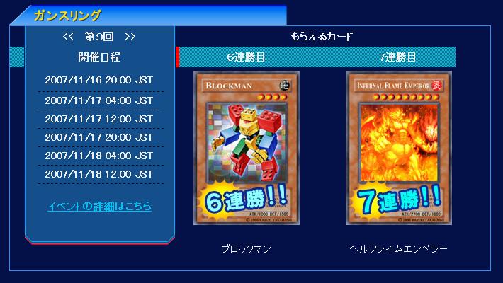 ガンスリング 第21回(EVO) ガンスリング 2007年11月15日 6連勝《ブロックマン》 7連勝《ヘルフレイムエンペラー》 さて明日はガンスリングですがどのデッキで行けばいいのやら。帝やバ-ンは使いたくねえしな。とりあえずいつも通りにいくか。世界大会予選もあるから調整もかねんととりあえず7連目指します。 PR