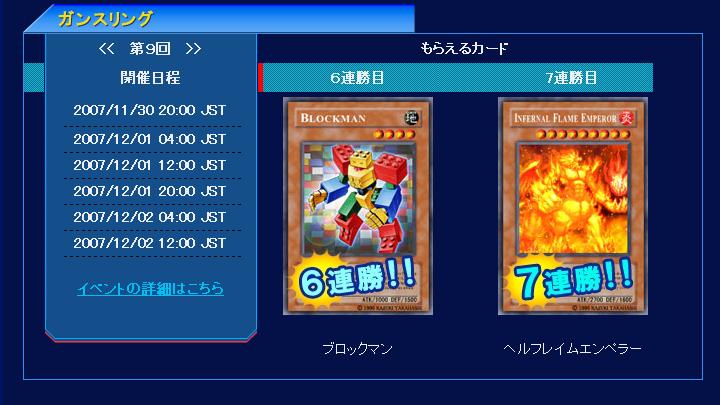 ガンスリング 第22回 ガンスリング 2007年11月30日 6連勝《ブロックマン》 7連勝《ヘルフレイムエンペラー》 ここしばらく7連できずにいる。いい加減一回ぐらいは7連せんとな。とにかくがんばります。 PR