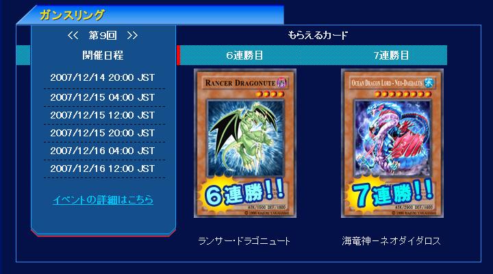ガンスリング 第23回 ガンスリング 2007年12月13日 6連勝《ランサー・ドラゴニュート》 7連勝《海竜神-ネオダイダロス》さて、明日ガンスリング。最後くらいは7連してみたいです。とりあえず、がんばります。 PR