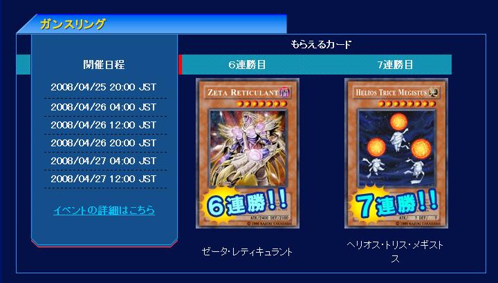 ガンスリング 第30回(EVO) ガンスリング 2008年04月25日 6連勝《ゼータ・レティキュラント》7連勝《ヘリオス・トリス・メギストス》さて、シ-ズン6最後のガンスリング。大会景品確保の為にも、2SET目標でがんばらねば。但し朝が起きられればだが。 PR