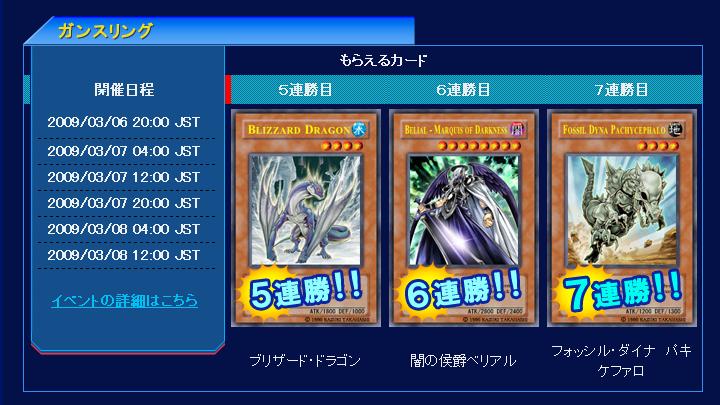 ガンスリング 第45回 ガンスリング 2009年03月06日 5連勝《ブリザード・ドラゴン》 6連勝《闇の侯爵ベリアル》7連勝《フォッシル・ダイナ パキケファロ》 はい、出られません。土曜の夜か日曜日の昼の部にかろうじて出られるかです、orz。出る方々頑張って下さい。こちらは温泉に浸かってのんびりしてます。 PR