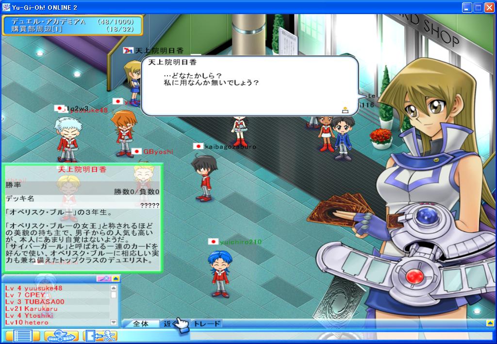 CPU対戦 スクリ-ンショット 2007年07月27日 今日のメンテの目的はこちらが本命だったのでしょうか。ドミノ町に新エリアが出現しそこには、社長が悠々と存在していた。そして、アカデミア購買部エリアには明日香が存在していました。いよいよCPU対戦の下地ができたと思っていいかもしれません。楽しみになって来ました。 PR