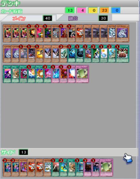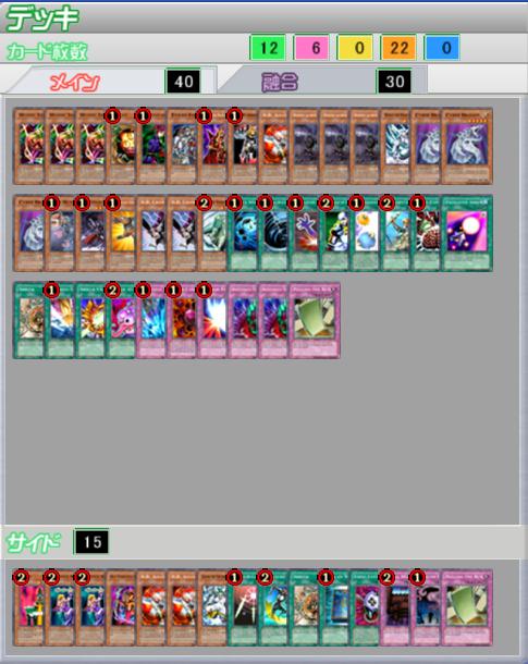 サイカリゴ-ズデッキ Ver.1.0 デッキレシピ 2007年11月13日 現在調整中にサイカリゴ-ズデッキ。師匠のサイカリゴ-ズの参考に自分なりに変えてみた。単純にトマハン、サイカリを組み合わせたような感じに見えるが結構奥が深かったりする。《死霊騎士デスカリバー・ナイト》は場に存在するときは当然効果モンスタ-は呼べないのでプレイングが要求される。まだ成れていないので自爆することもしばしば。サイカリミ-ネとの違いは 《D.D.クロウ》を2枚採用。これは当然《黄泉ガエル》対策なのだが、《D.D.クロウ》を使い相手の《死霊騎士デスカリバー・ナイト》の効果を発動させつぶしたりと結構汎用性の高い使い方ができる。とりあえず実戦を重ね調整していきたいと思います。デッキ詳細モンスタ- 22枚《キラー・トマト》3、《クリッター》《ならず者傭兵部隊》、《冥府の使者ゴーズ》《魔導戦士 ブレイカー》、《異次元の女戦士》、《聖なる魔術師》 《D.D.アサイラント》、《N・グラン・モール》《D.D.クロウ》2、《氷帝メビウス》、《風帝ライザー》《サイバー・ドラゴン》3、《死霊騎士デスカリバー・ナイト》3魔法 12枚《大嵐》、《サイクロン》、《早すぎた埋葬》、《抹殺の使途》《スケープ・ゴート》、《増援》、《洗脳-ブレインコントロール》 《魔法効果の矢》、《収縮》、《地砕き》《シールドクラッシュ》、《貪欲な壺》 罠 6枚《死のデッキ破壊ウイルス》、《激流葬》、 《聖なるバリア-ミラーフォース-》 《奈落の落とし穴》2、《畳返し》サイドデッキ《執念深き老魔術師》、《見習い魔術師》2《人造人間-サイコ・ショッカー》、《強制転移》、《D.D.アサイラント》2、《雷帝ザボルグ》《光の護封剣》、《抹殺の使途》、《収縮》《月の書》、《エネミーコントローラー》《リビングデットの呼び声》《王宮のお触れ》、《畳返し》↑こちらが元になった師匠版サイカリゴ-ズサイドデッキは違っていますがメインはこんな感じでした。 PR