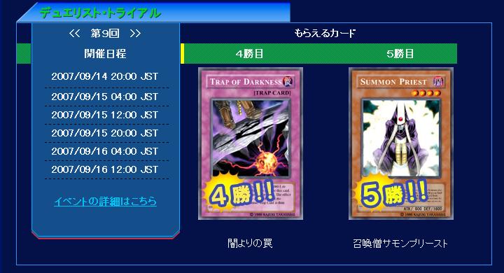 デュエリスト・トライアル 第17回 トライアル 2007年09月14日 さて今日からはシ-ズン5。そして最初のトライアル。制限改訂直後なのでとりあえずいつものように3周をノルマに最低4回、できれば6回フル出場目指してがんばります。あとは全体的に帝、バ-ンの比率を計っておかなければ。4勝目 《闇よりの罠》 5勝目 《召喚僧サモンプリースト》 PR