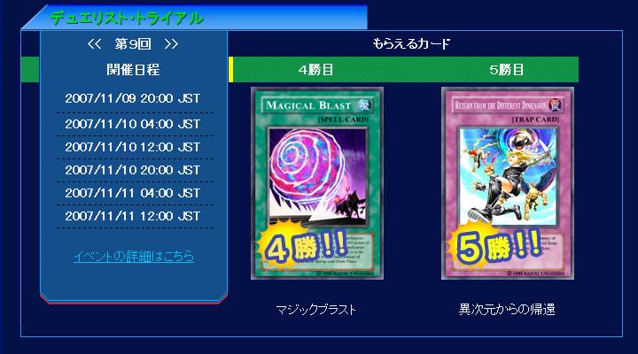 デュエリスト・トライアル 第21回 (EVO) トライアル 2007年11月09日 4勝目《マジックブラスト》 5勝目《異次元からの帰還》さて、アニバ-サリ-が終了し、《冥府の使者ゴーズ》を参加者や参加していない人もおそらく持っているだろうこのカオスな環境な中、3周できっかな。とりあえず、プレイングに集中することにしよう。 PR
