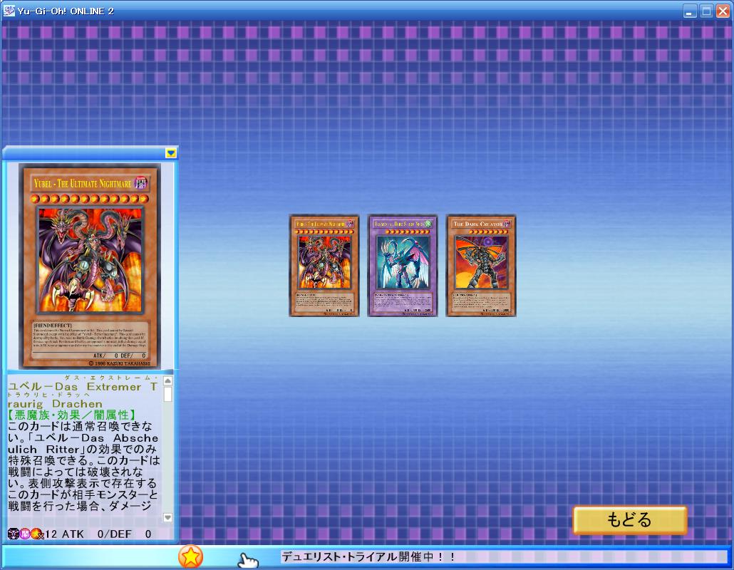デュエリスト・トライアル 第32回(EVO)朝の部②、昼の部③ トライアル 2008年05月31日 さて朝は起きれませんでした。昼の部で出勤の為、OUT。出る方はがんばってくれい。↓オマケサブIDとの交サレ中のSSなかなか無いと思える引きかと。 PR
