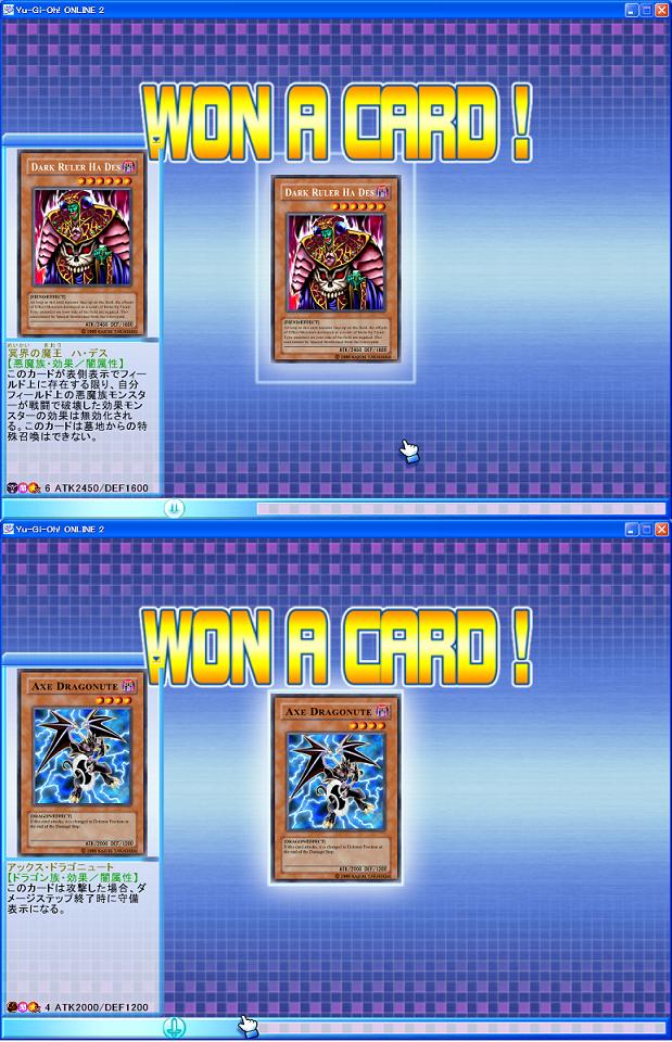 デュエリスト・トライアル 第59回結果 トライアル 2009年12月20日 さてトライアルですが1セットだけであとは出ませんでした。次はもちっとやる気だします。決してFF13に逃避していたわけではありませんw。だってまだ買ってませんから。TP 50P戦利品4勝目《アックス・ドラゴニュート》1枚5勝目《冥界の魔王 ハ・デス》1枚 PR