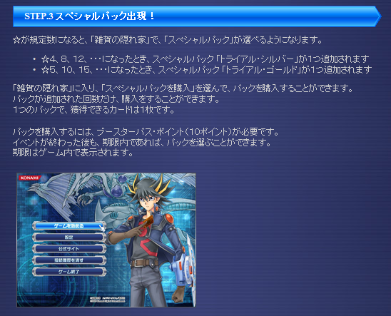新・デュエリスト・トライアル トライアル 2010年06月10日 さてマサさんのところでトライアルの話が出ていたのでこちらでも。画像がバグなのでわかりずらいですがメイン画面、おそらくは今のエリアが表示されている画面から5DSで言うスタジアムに移動し参加するものと思われる。とうとうイベントカードまで課金制になりましたか。終わってるな運営。日付は変にバグってるからわかりませんが今のところ7/28ですかまあとりあえず運営にメール攻撃だな。大人はともかく子供から暴利に金巻き上げてどうするんだよ。キッチリ説教くれてやる。 PR