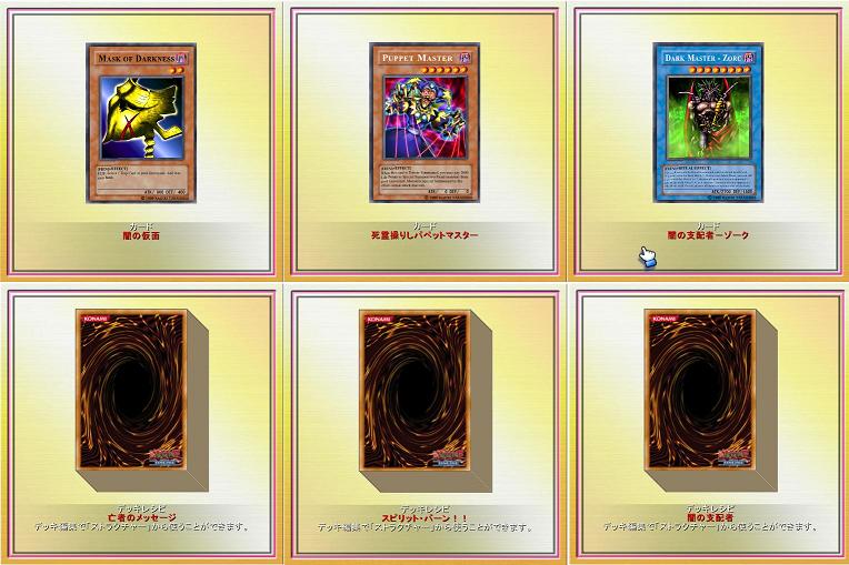 CPU対戦日記⑭ CPU 2008年06月09日 ドミノ町側30 闇バクラ(原作キャラ)時計塔広場デッキ名 亡者のメッセージ9勝目から スピリット・バーン!!15勝目から 闇の支配者もらえるカ-ド5勝目 《闇の仮面》13勝目 《死霊操りしパペットマスター》20勝目 《闇の支配者-ゾーク》もらえるデッキレシピ8勝目 亡者のメッセージ16勝目 スピリット・バーン!!23勝目 闇の支配者もらえるアバタ-アイテムバクラプレゼント 勝敗○○○○○○○×○×××○○○×○○○○○○○○○○××○○さて久方ぶりのCPU対戦。闇バクラとデュエル。《ウィジャ盤》決められました。一度一コマずつSS撮って見よう。もらえるカ-ド、デッキレシピアバタ-アイテムはごらんの通り。お次はヘルカイザ-行ってみます。 PR