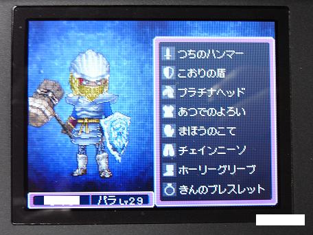 ドラゴンクエストⅨ 星空の守り人 現在の状況 NDS 2009年07月17日 はい、DQ9PLAY中です。途中経過ですが今はこんな感じ。もうラスボスの3歩くらい手前あたり。日曜日あたりには終わると思います。追記ひとことだけ。ドリルは漢のロマンですw。 PR