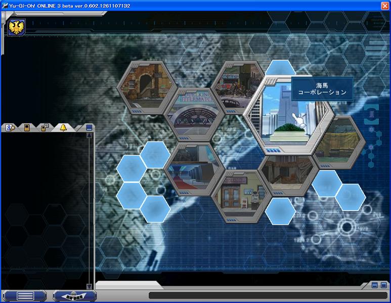 遊戯王オンライン デュエルアクセラレーターβ その1 YO3β 2009年12月23日 さてベータの軽い雑感です。まずはタイトル。で画面クリックで上記の選択項目。で公式でもありますが、画面サイズでのバグがありますので1024×600のサイズが今は妥当。グラフィック処理能力にも若干左右される模様。でエリアマップです。現状移動できるエリアは8つ。で使用可能なエリアは3つです。トータルエリア数は16。いずれ移動できるようになるのでしょう。移動可能エリアで入れるのはまず雑賀の隠れ家。こちらは前回で言うカードSHOP。でここがまだ入れませんがDUELKINGトーナメントと見える。前回で言うYOCの開催場所でしょうか。ここは5DSで言うセキュリティのような感じに見えます。ここは何でしょうか喫茶店のような感じに見えます。こちらは5DSで言うサテライトでしょうか?。でここが海馬コーポレーションCPUと現状対戦する場所はこちらです。ここもおそらくサテライトの場所の一つだと思います。クロウがいる場所に似てるっぽいですが。で最後に自分のアジト。前回で言う自分の部屋ですね。ここではアバターの設定等ができます。アバター等の状態は別記事にて。 PR