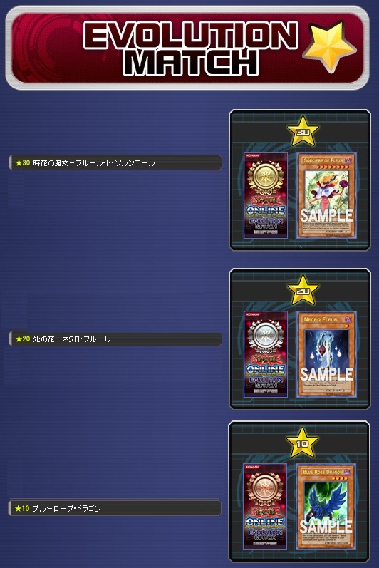 YO3 エボリューション・マッチ 第19回、第20回 エボリューション・マッチ 2011年07月28日 ☆30《時花の魔女-フルール・ド・ソルシエール》☆20《死の花-ネクロ・フルール》☆10《ブルーローズ・ドラゴン》 つづきはこちら