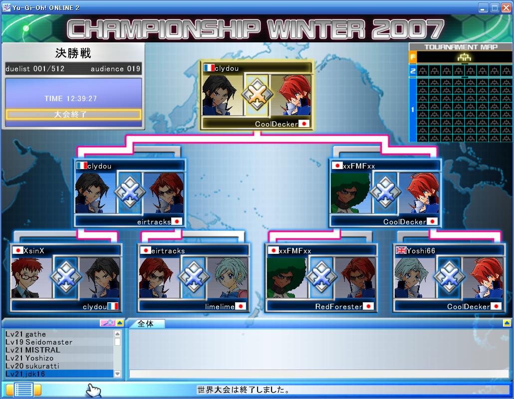 CHAMPIONSHIP WINTER 2007 予選 第9回 CHAMPIONSHIP 2007年12月03日 CHAMPIONSHIP WINTER 2007 予選 第9回結果優勝はCooldeckerさん。何回目のファイナル出場だ。やっぱ強い人は強いんだなと思う。ログを見る限り、今回は運に救われている感もありますがそれも実力の内ですからね。 PR
