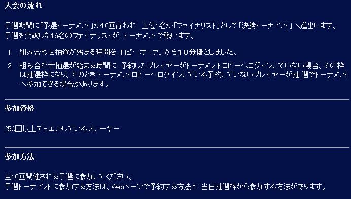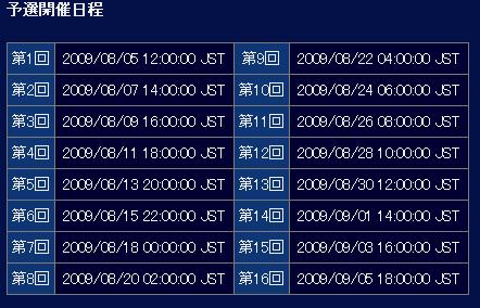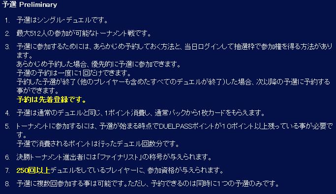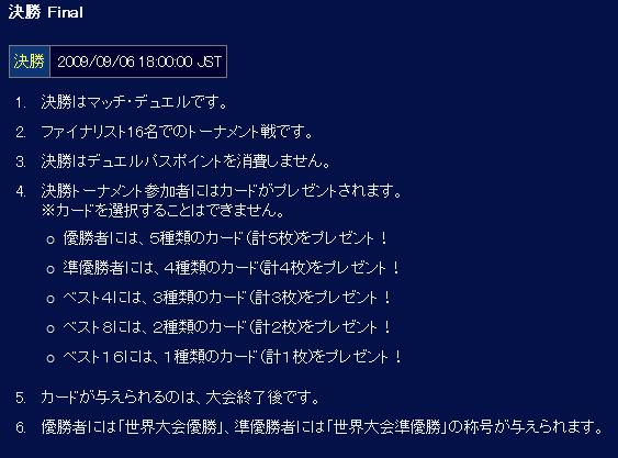 YUGIOH ONLINE CHAMPIONSHIP SUMMER 2009 CHAMPIONSHIP 2009年07月27日 さて公式にてYUGIOH ONLINE CHAMPIONSHIP SUMMER 2009の予選予約が開始されました。予選予約の日程は上記の通り。8/9、8/13、8/15、8/22、8/30、9/5合計6ケ所予約枠は押さえました。決勝は9月6日の午後18時からです。頑張っていきましょう。 PR