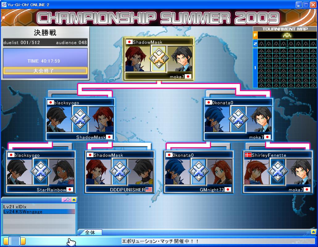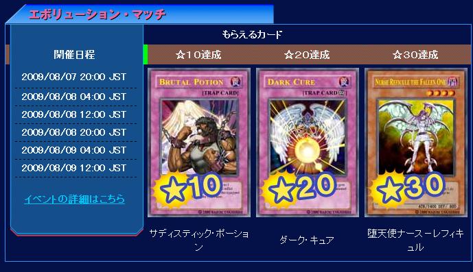 エボリューション・マッチ 第28回 夜の部① エボリューション・マッチ 2009年08月08日 ①×× 光ビート☆0②○○ ライトロード☆6③○×× 剣闘獣☆2④×× 剣闘獣☆0⑤×○切 ?☆10⑥○切 ?☆6⑦×× 剣闘獣☆0⑧×○× 剣闘獣☆4⑨×○○ 初心者☆10⑩○○ 70枚☆6 つづきはこちら