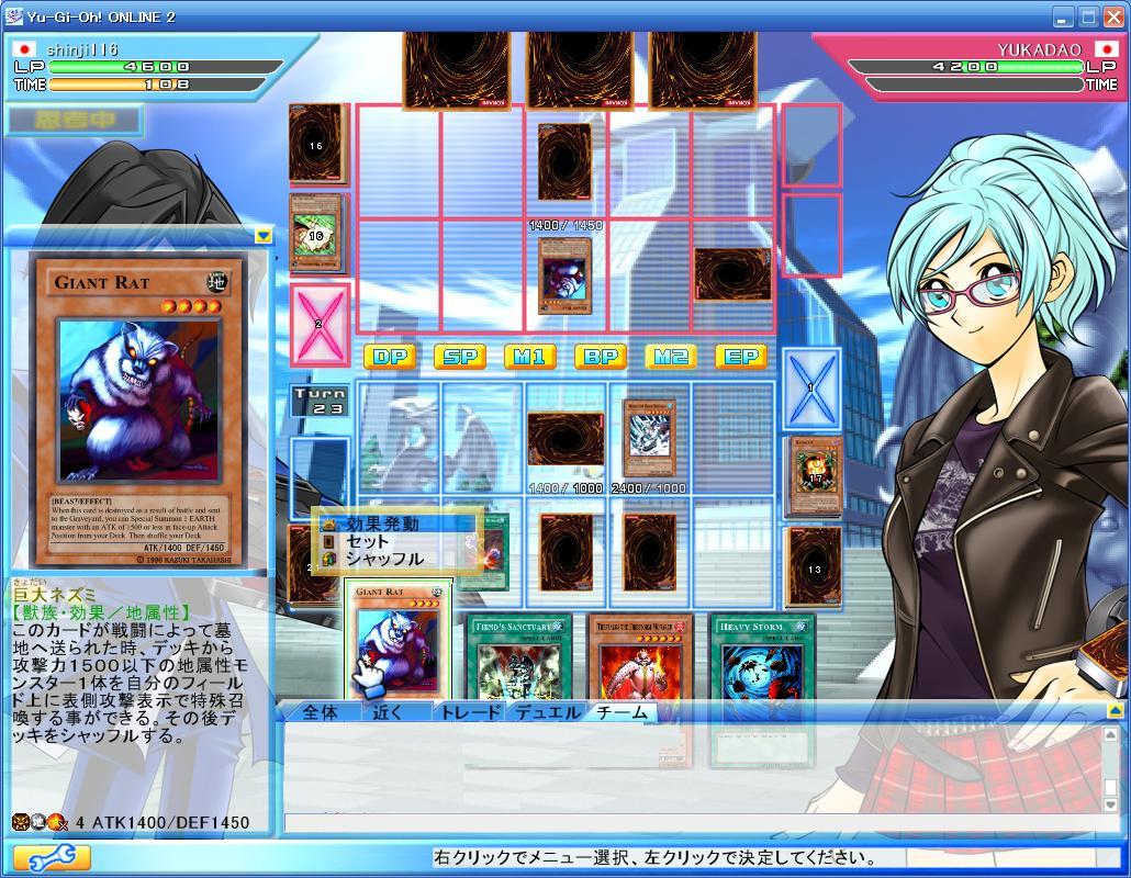 画像バグ スクリ-ンショット 2008年05月21日 さて今オンラインプレイ中に手札やフィ-ルド上のカ-ドの画像等がちがったものになるというバグが発生しております。ちなみに上記の画像はチ-ムメイトの対戦中の出来事。《デビルズ・サンクチュアリ》がなぜか《巨大ネズミ》に変わりました。使用したらト-クンは普通に出てきましたが。これはちょっと致命的ですわ。早く直してくださいねコナミさん。