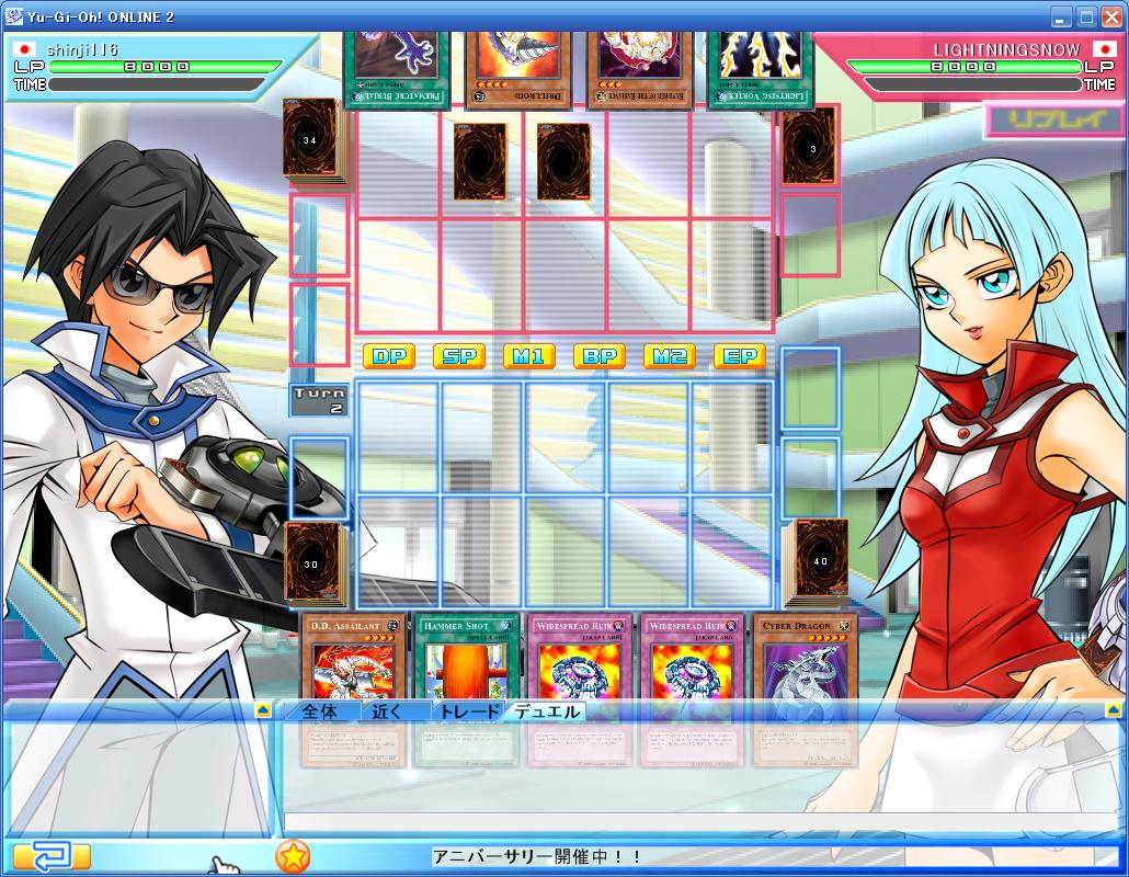 アニバ-サリ-トライアル 1日目 トライアル 2007年10月27日 ○×××○○×○○×○○○○×○○○××○(ize姫)○×○ アニバ-サリ-トライアル1日目使用デッキ閃光ガジェット②15勝9敗勝率悪いな。13戦目でフレのizeさんと対戦。(SS撮り損ねたのでログからの画像)始め事故ってましたが今回は勝ちを拾えました。しかし前回のアニバと違い時間がかかる。3時間あれば30勝は前回なら行けたが。ちょっと休憩したらトライへ参戦します。