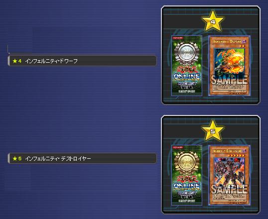 YO3 デュエリスト・トライアル 第12回 トライアル 2011年02月11日 4勝目《インフェルニティ・ドワーフ》 5勝目《インフェルニティ・デストロイヤー》 ランキングの維持及び余裕を持たせる為がんばります。