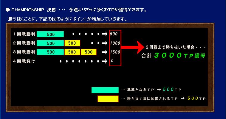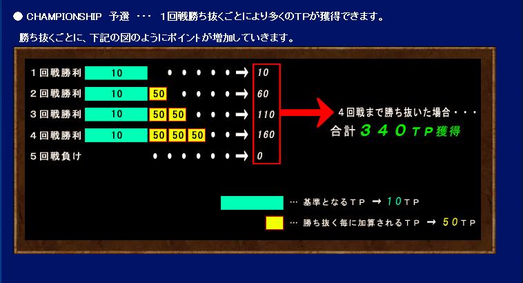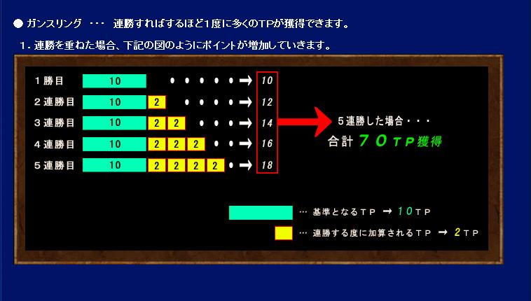 TPランキングのポイントの詳細 TPランキング 2007年04月10日 TPランキングのポイントの詳細についてまずは、トライアル次は、ガンスリング次に大会予選最後は大会決勝。ガンスでのポイント大きいが予選でのポイントもやはり大きい。なるべく予選は参加しておくほうが貯金はできる。深夜や早朝は勘弁願いたいが。