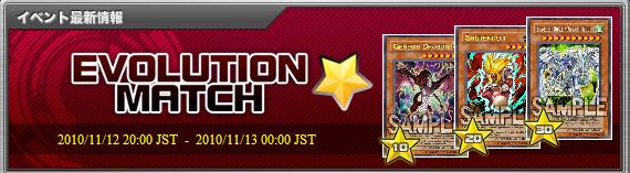 YO3 エボリューション・マッチ 第6回 エボリューション・マッチ 2010年11月12日 ☆10《創世竜》☆20《酒呑童子》☆30《スターダスト・ドラゴン/バスター》 1000位内に入れるくらい程度には頑張ろうかと思う。モチベが上がればだけど。
