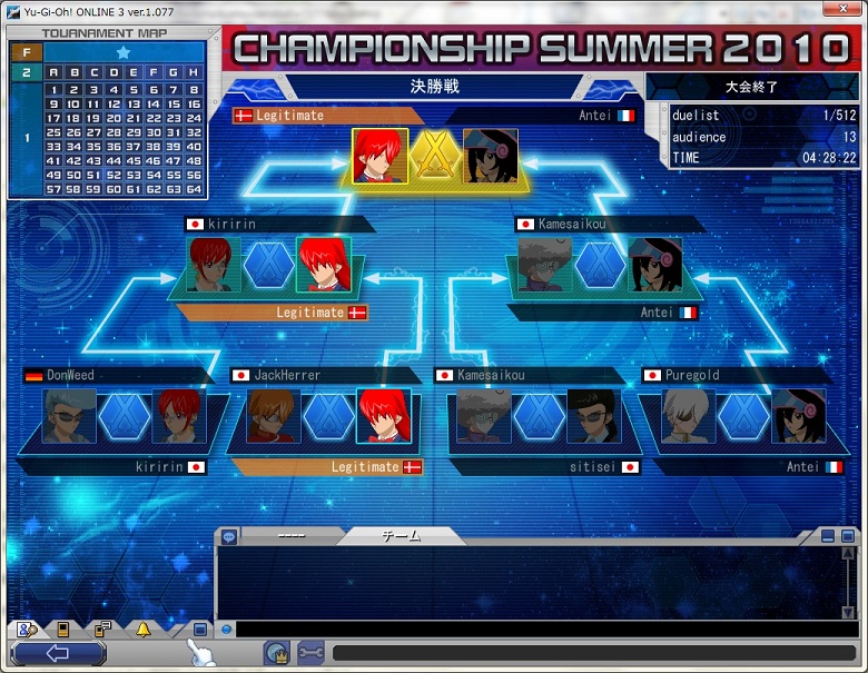 YUGIOH ONLINE CHAMPIONSHIP WINTER 2010 予選第6回 CHAMPIONSHIP 2010年08月16日 サブで予約していたので参加。もうひとつ抽選も通りました。しかし結果は1回戦負け。プレミスが多かったのでしゃーないです。