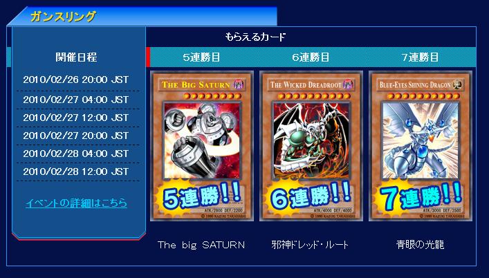 公式より YO3β 2010年02月24日 DUEL EVOLUTION停止日程および、DUEL ACCELERATOR 正式サービス日程のお知らせ 遊戯王ONLINE DUEL EVOLUTIONの停止日程および、DUEL ACCELERATOR正式サービスの日程は下記を予定しております。■DUEL EVOLUTIONを、3月1日 8:00 に停止いたします。■DUEL ACCELERATOR βテストを、3月1日 8:00 に停止いたします。■DUEL ACCELERATOR 正式サービスは、3月5日 10:00開始予定となります。※2010年3月1日以降は、DUEL EVOLUTIONでは遊べなくなります ↓いよいよYO2の終了及びYO3開始までカウントダウンに入るようです。コンマイの社員よ、3月1日~3月5日の開始まで馬車馬のごとく働くべし。