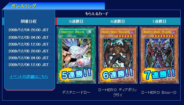 定期メンテナンス その他 2009年11月30日 メンテナンスを実施いたします。(2009/11/30 12:00 JST)メンテナンス中はゲームサーバーへ接続する事はできませんので、あらかじめご了承ください。メンテナンス時間は下記を予定しております。2009/12/01 12:00 JST ~ 2009/12/01 13:00 JST※都合により作業時間が延長される場合がありますがご了承下さい。↑たぶんキャンペーン終了の事後処理メンテです。何もないでしょう。