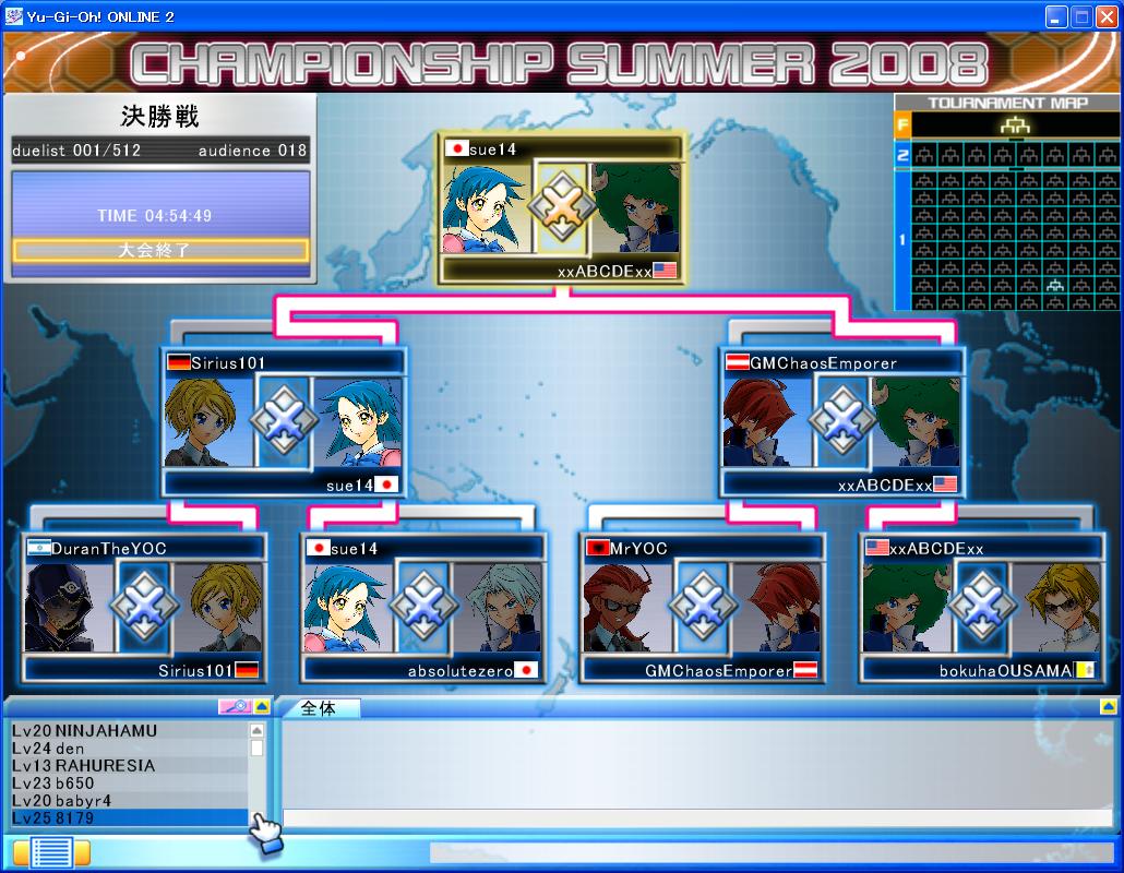 YUGIOH ONLINE CHAMPIONSHIP SUMMER 2008 決勝大会 CHAMPIONSHIP 2008年08月24日 YUGIOH ONLINE CHAMPIONSHIP SUMMER 2008 決勝大会 つづきはこちら