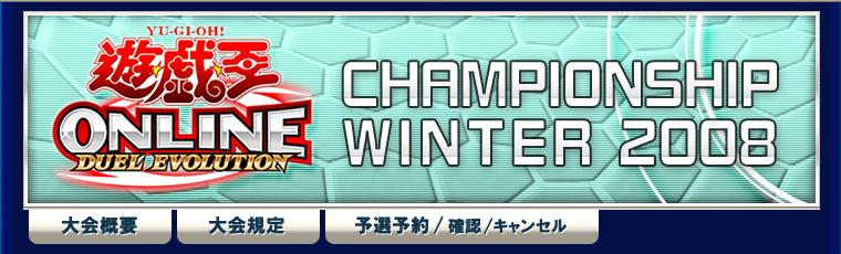 YUGIOH ONLINE CHAMPIONSHIP WINTER 2008 予選 第3回 CHAMPIONSHIP 2008年12月07日 さて予約していたので参加、ついでにサブも抽選で参加結果、両方とも一回戦負け。う-ん、2垢なんてアホなことするもんじゃありません。