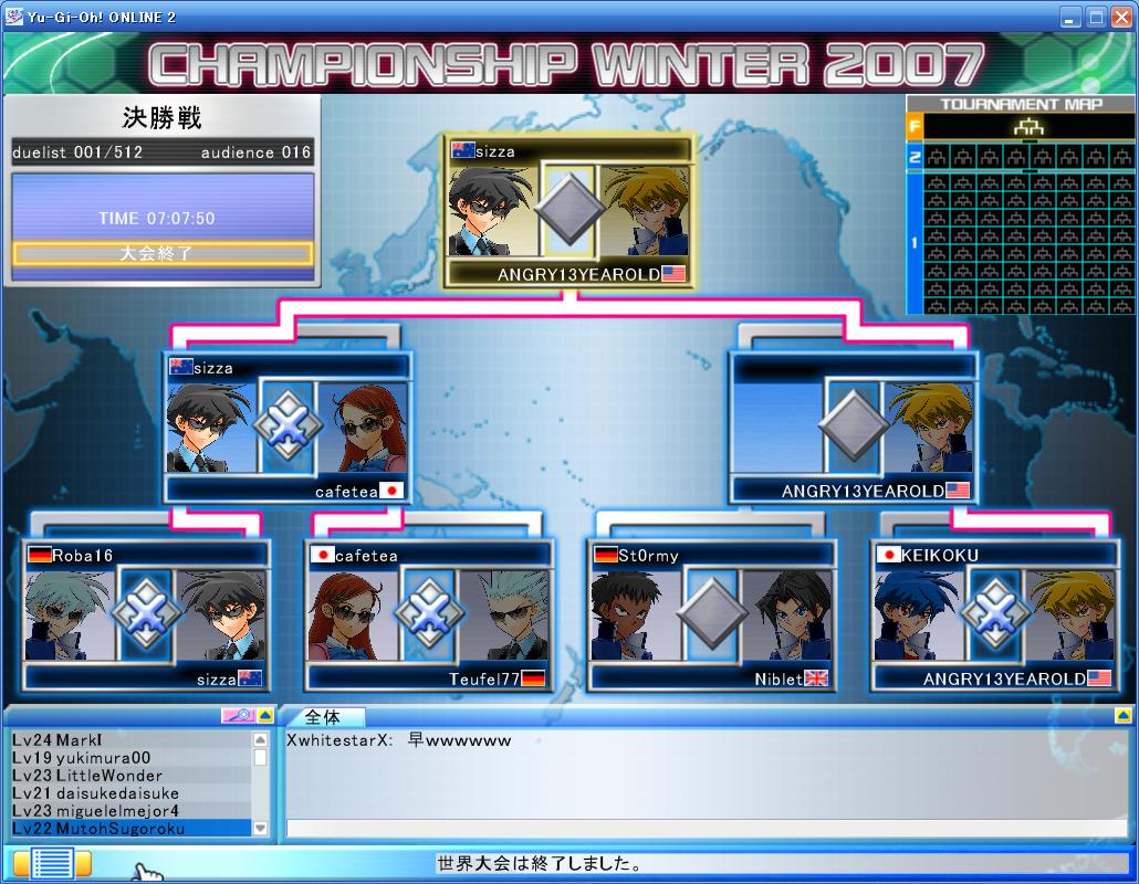 CHAMPIONSHIP WINTER 2007 予選 第11回 CHAMPIONSHIP 2007年12月10日 CHAMPIONSHIP WINTER 2007 予選 第11回 結果UPし忘れたので結果だけ。優勝はSIZZAさん。